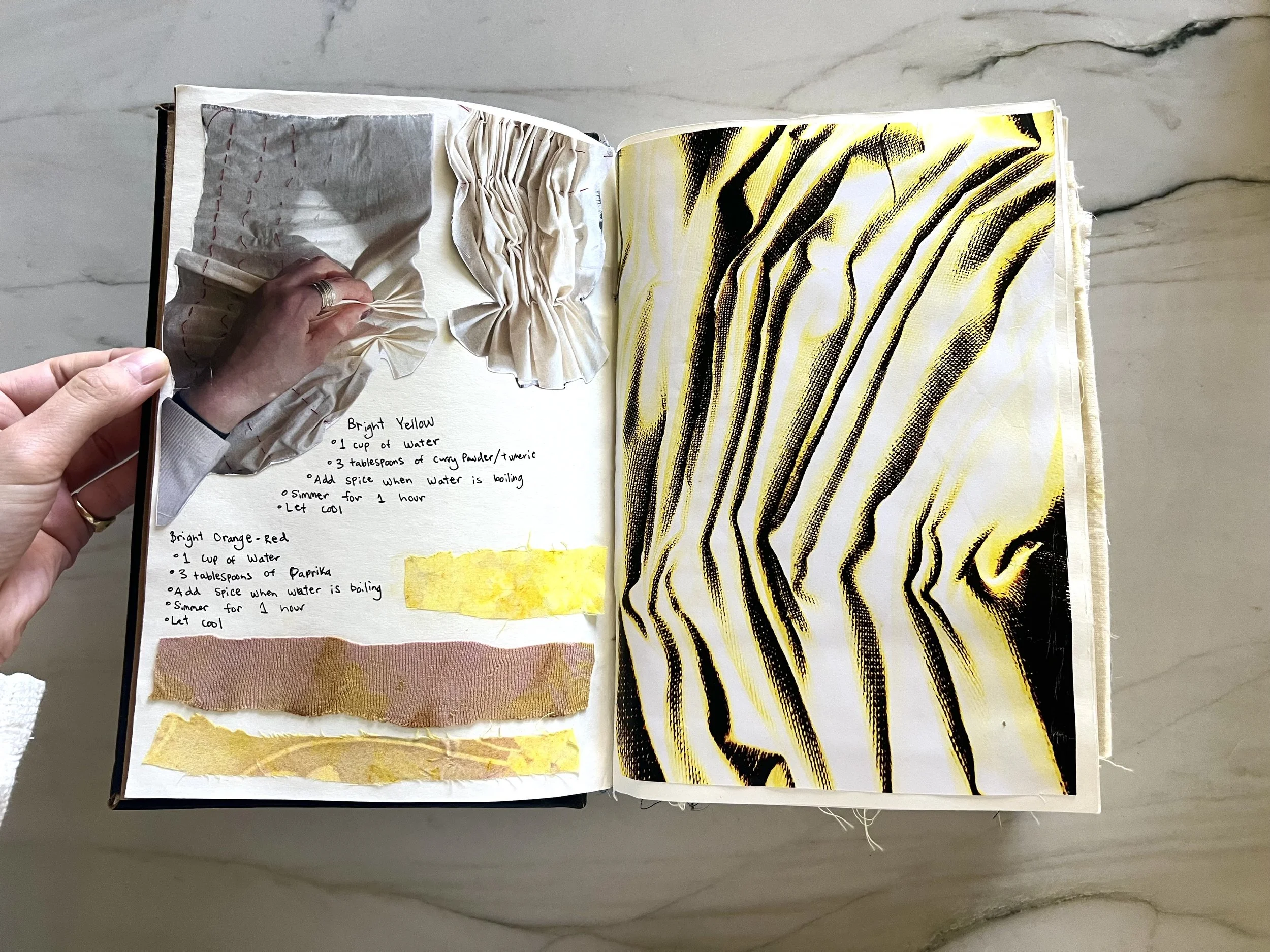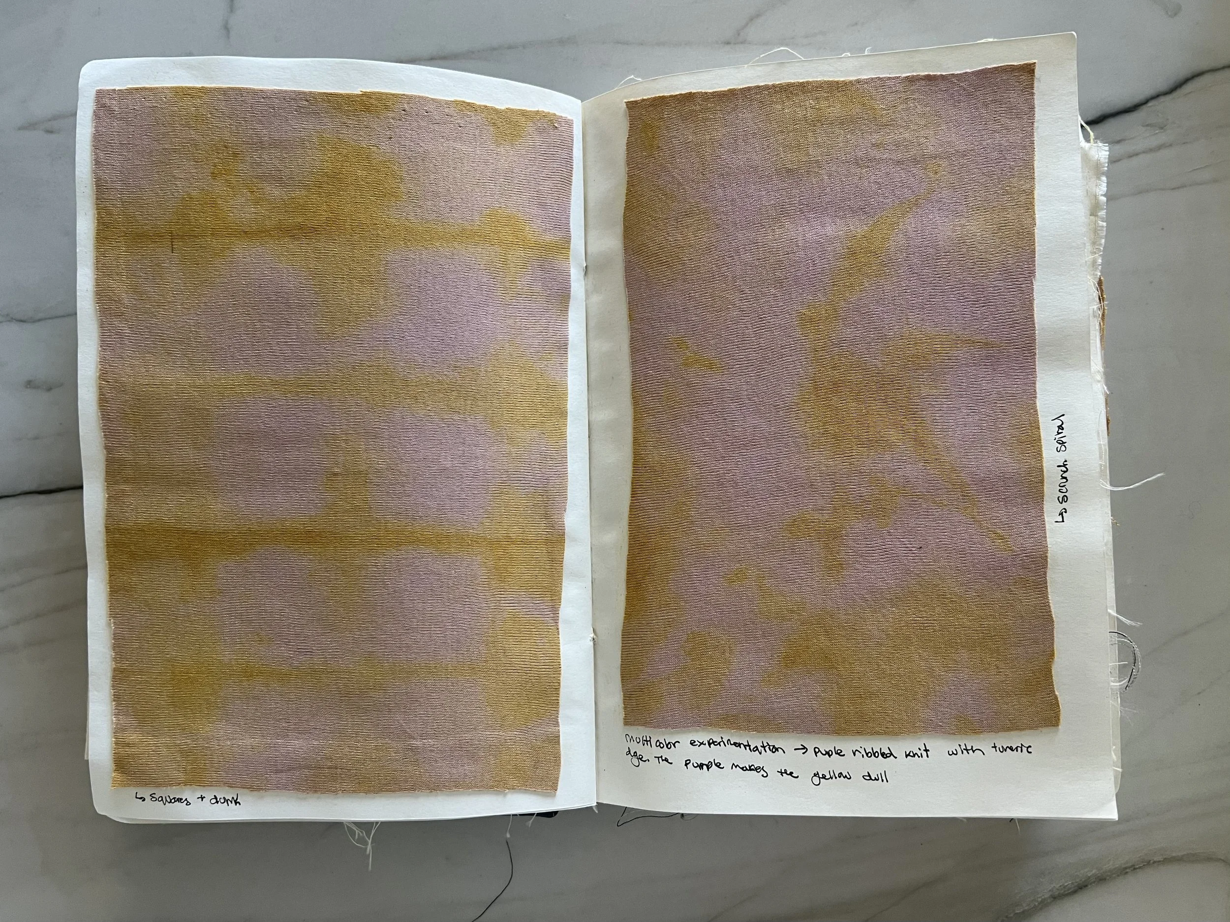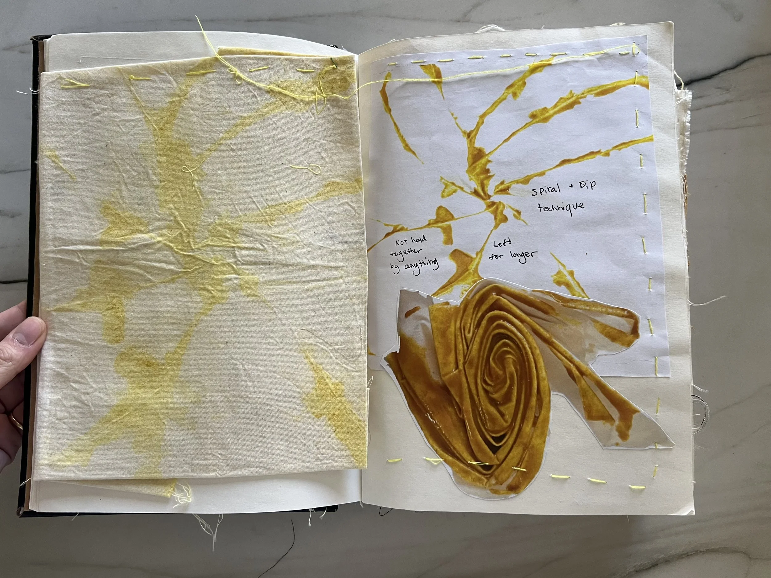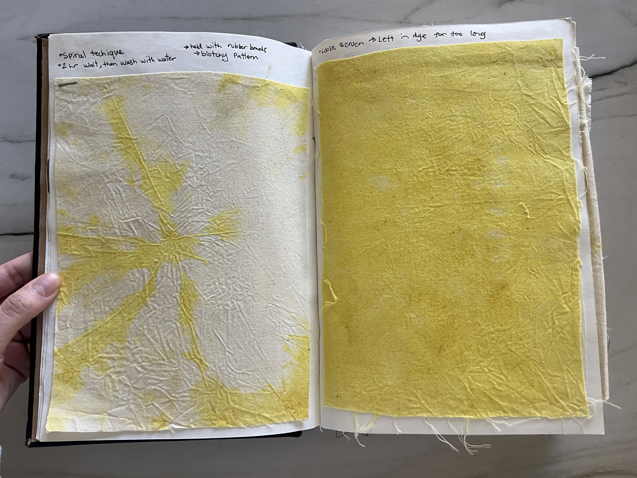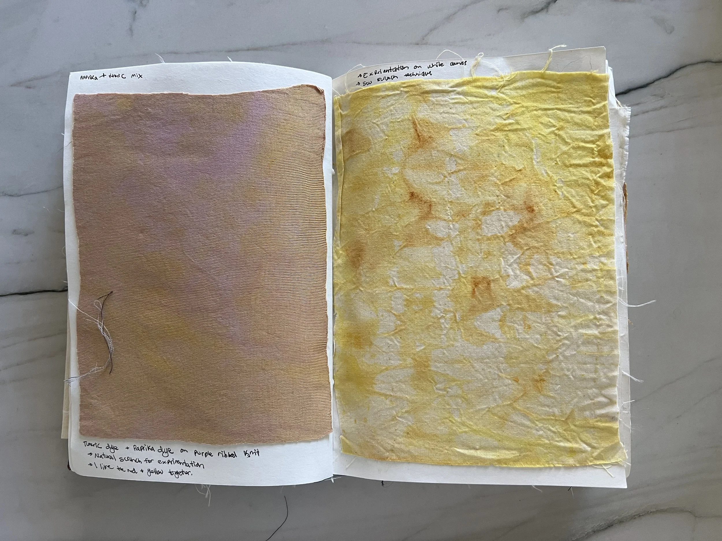A Textile Process book where I explore dying sustainbility through different natural dye techniques using the spice, Tumeric.