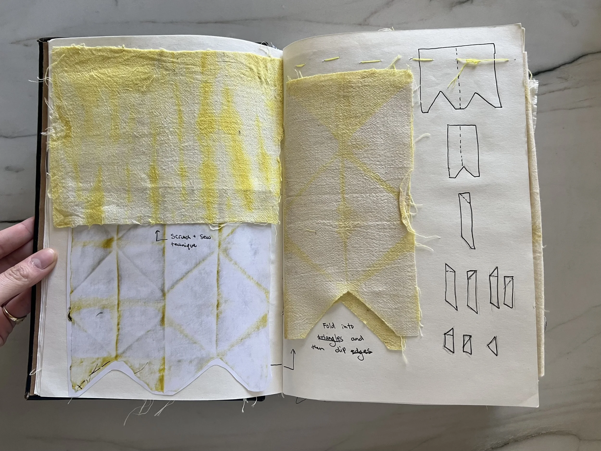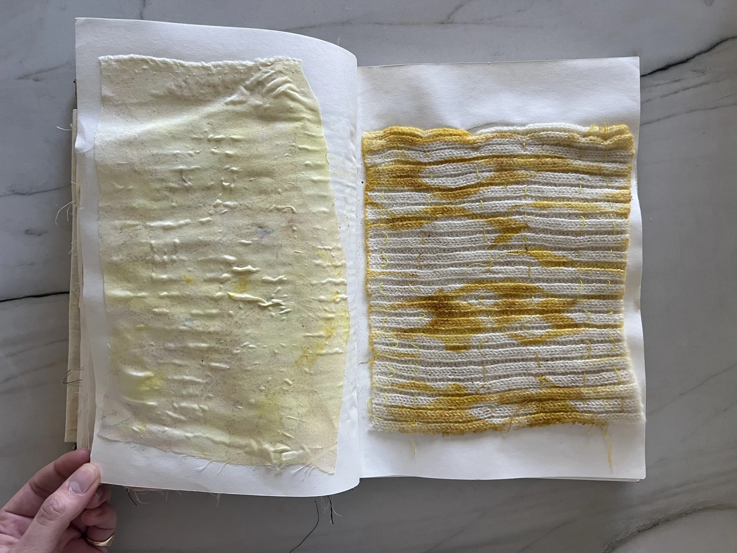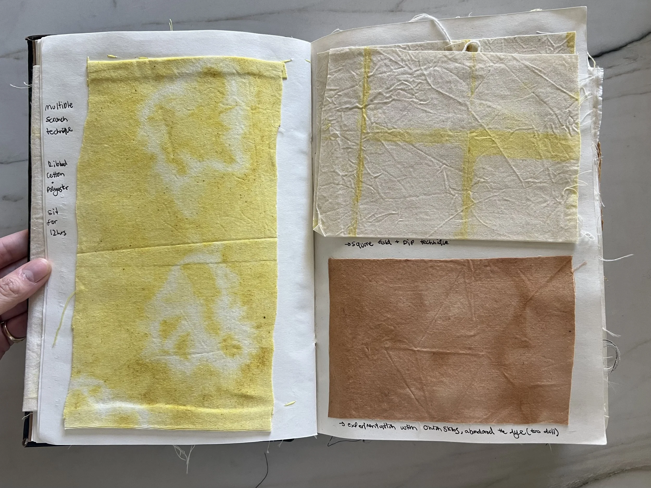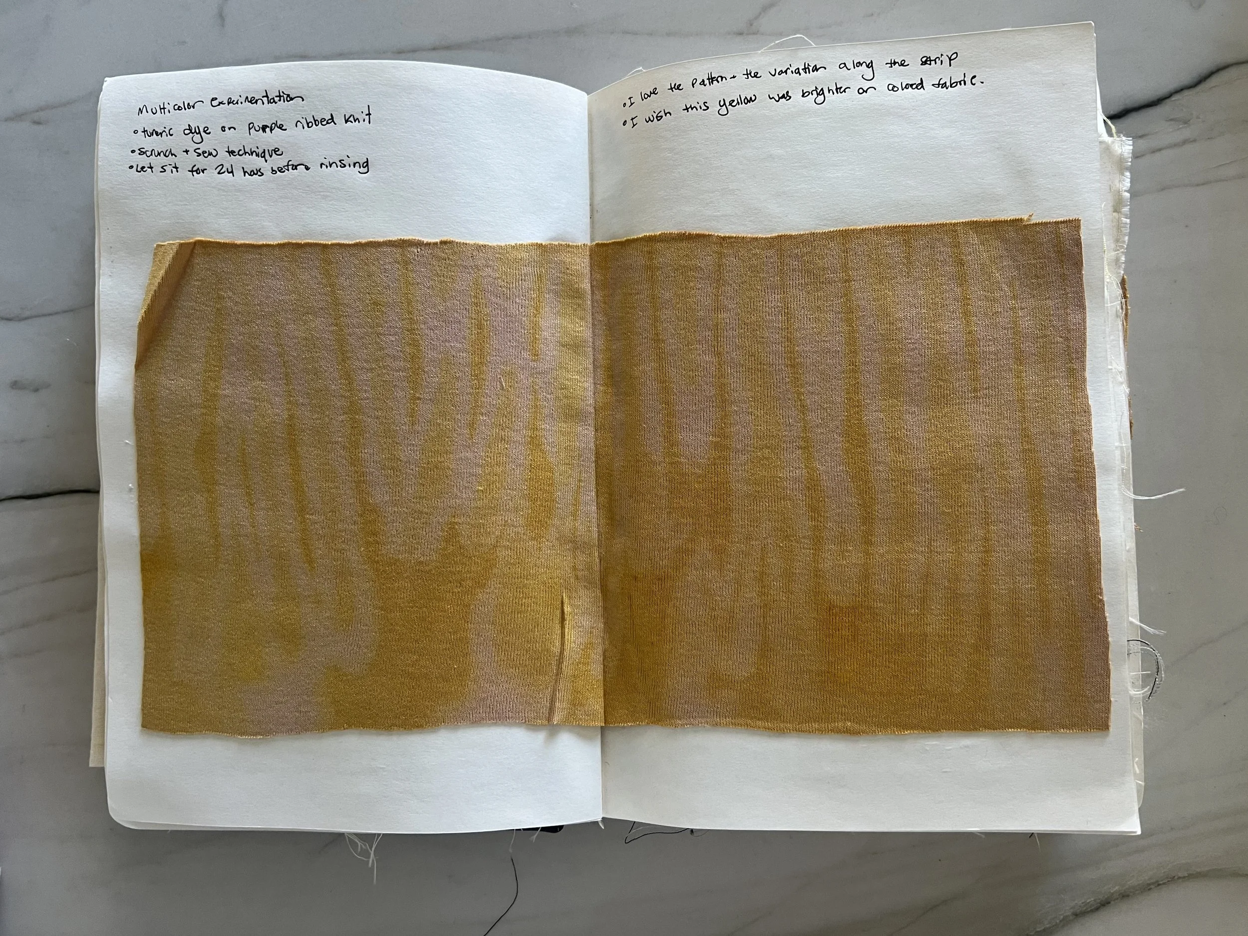 A Textile Process book where I explore dying sustainbility through different natural dye techniques using the spice, Tumeric.