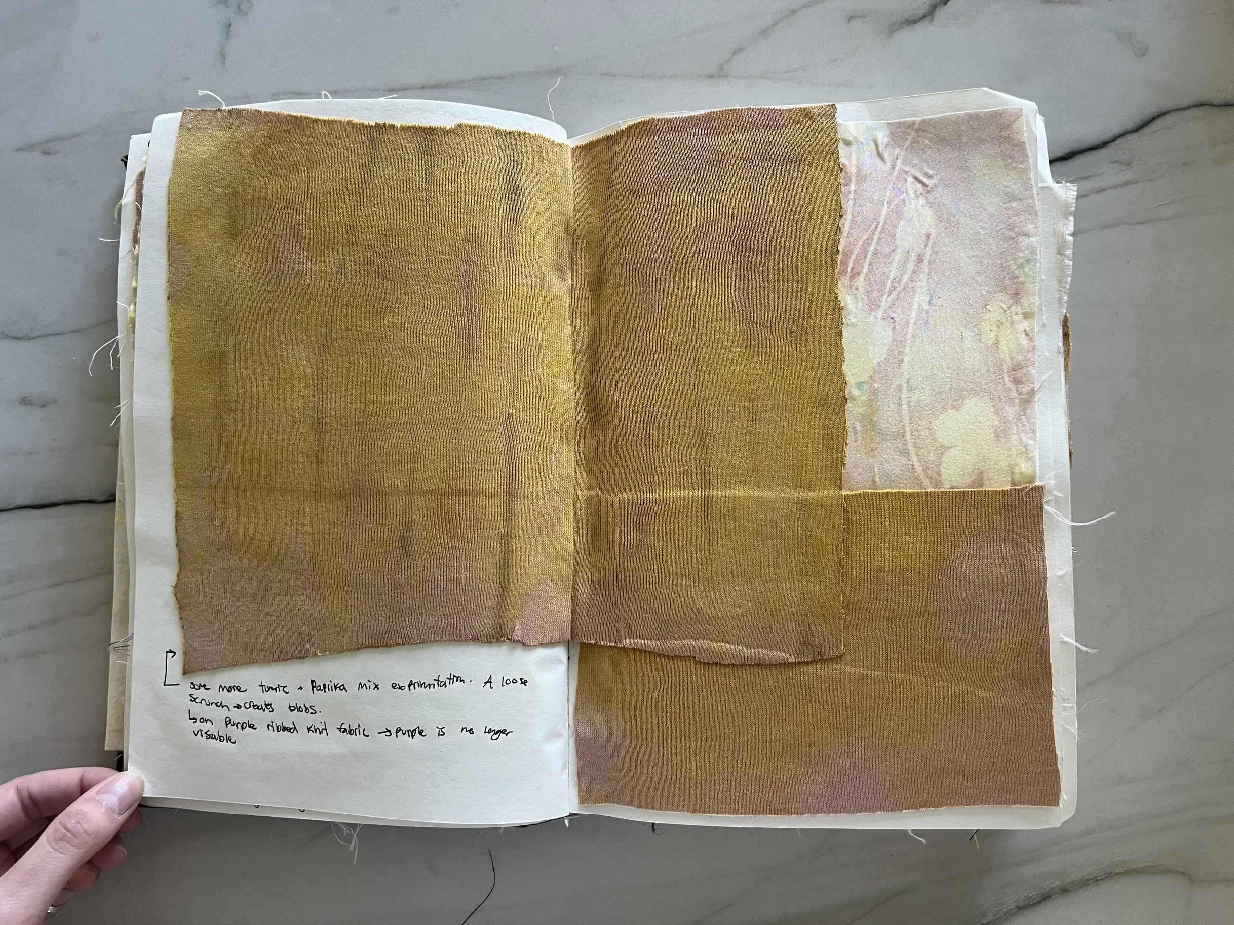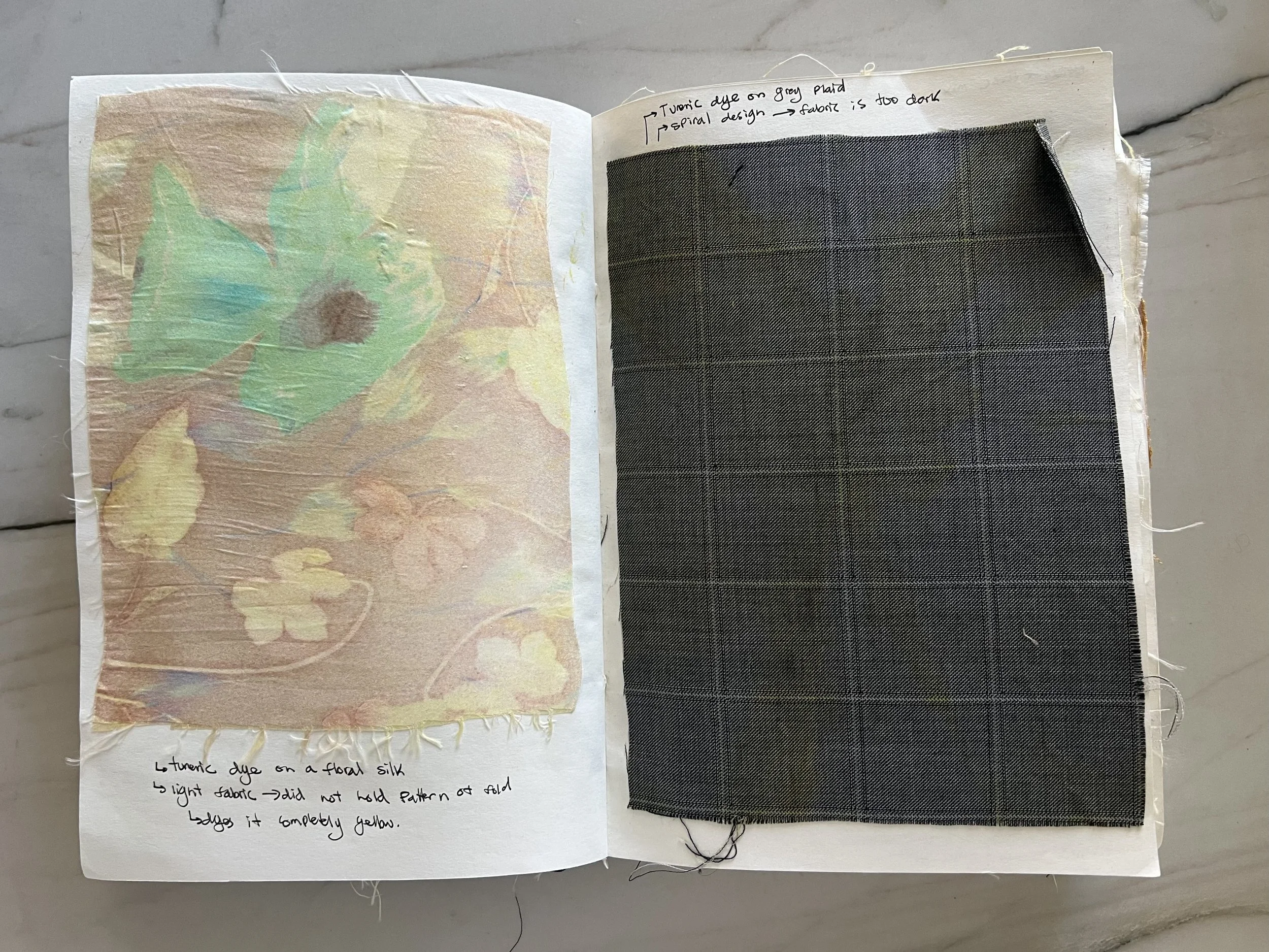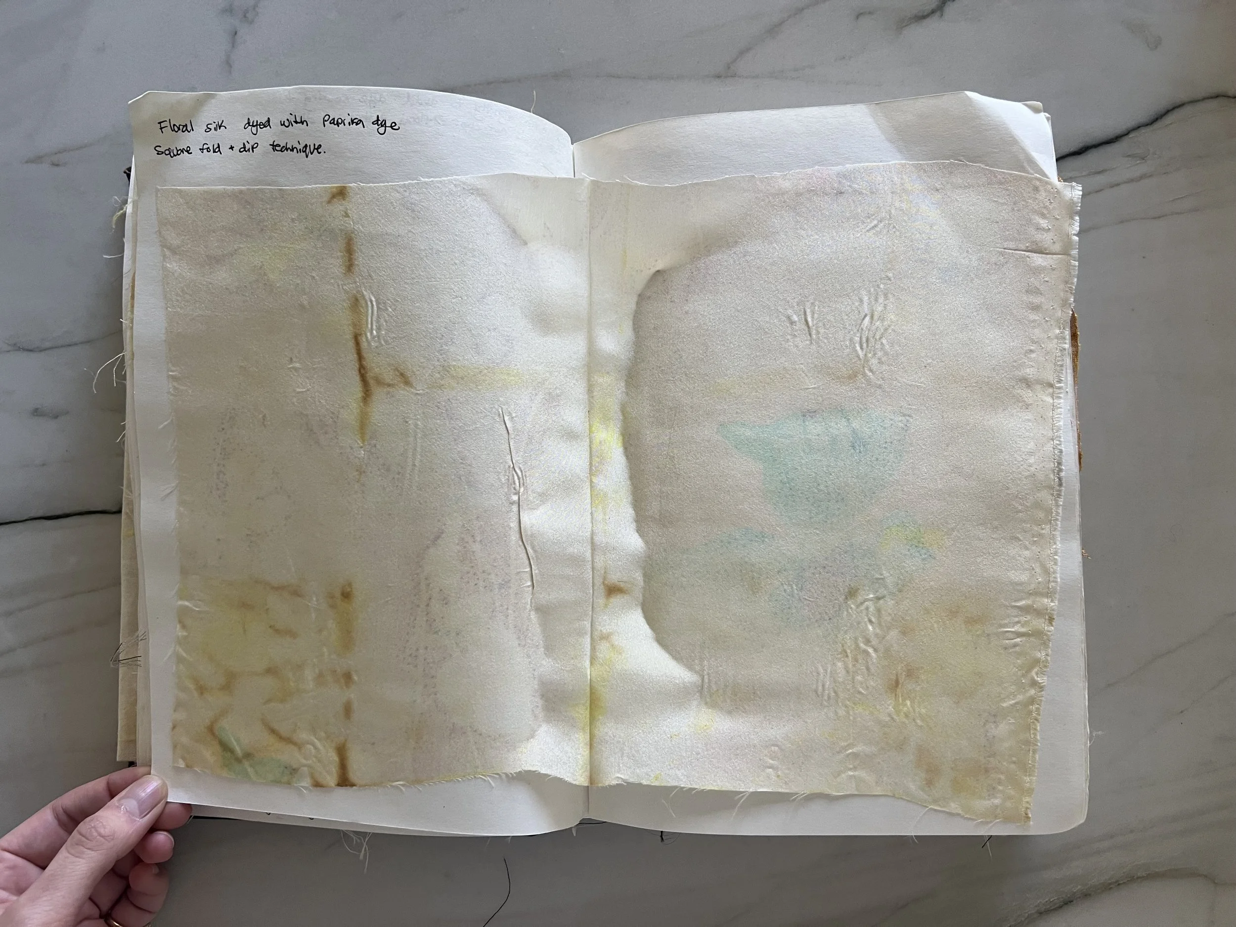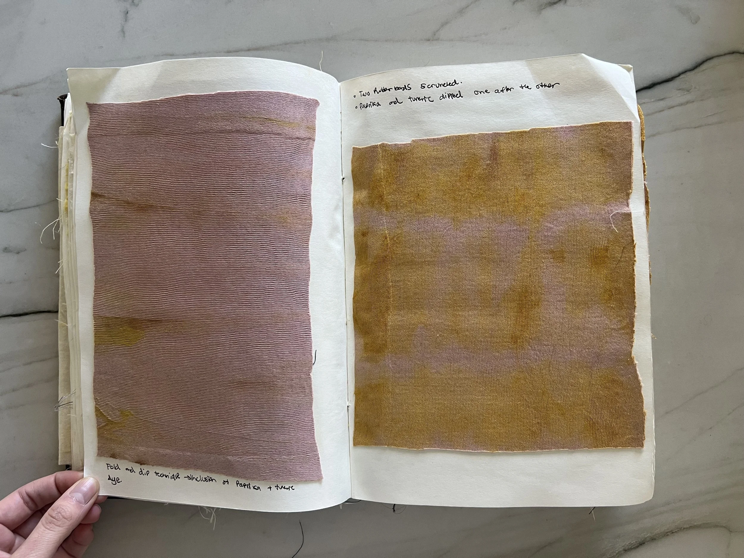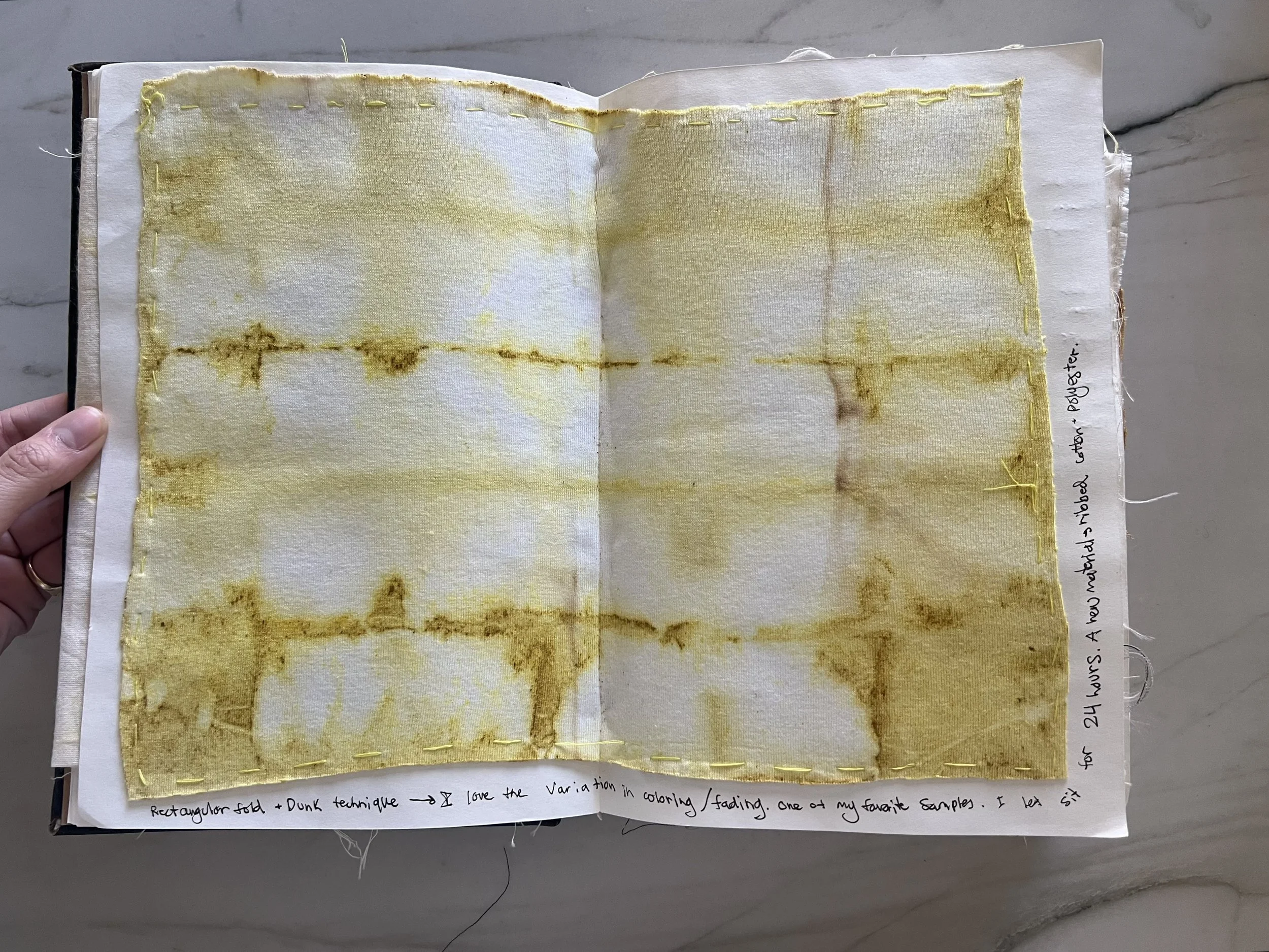A Textile Process book where I explore dying sustainbility through different natural dye techniques using the spice, Tumeric.